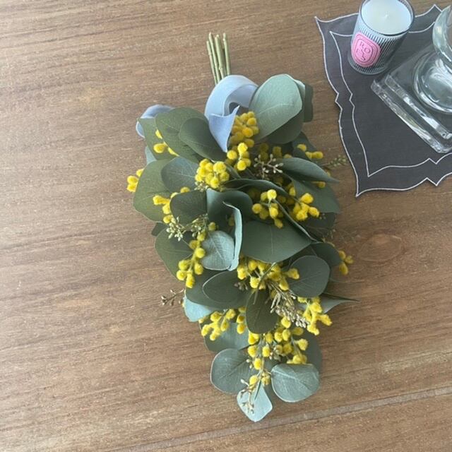 ユーカリを使ったミモザとユーカリのスワッグ。
