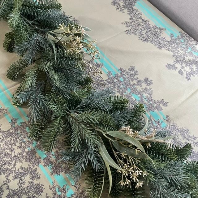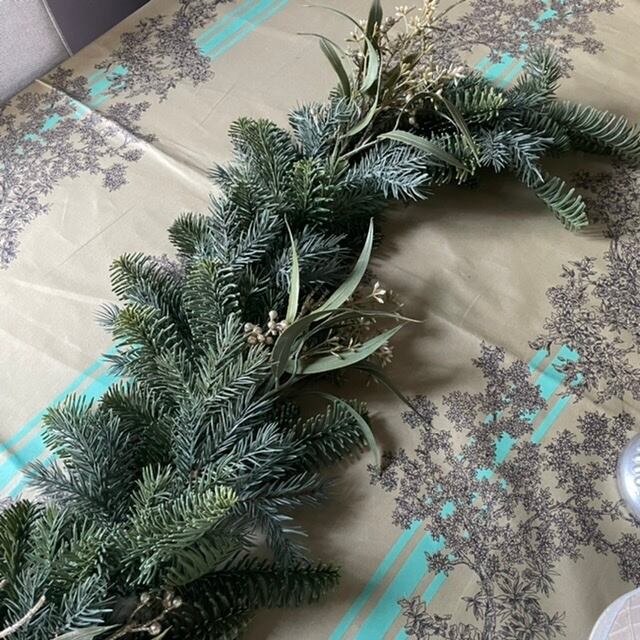 長いまま テーブルセンターに 丸めてリースにしたりシャンデリアに絡ませたりいろんな使い方ができるガーランド、