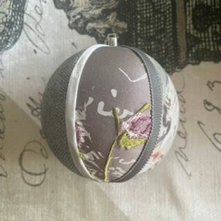 大人気でファブリックアートパネルをお持ちの方も多いグレーのシルク刺繍生地のクリスマスボール