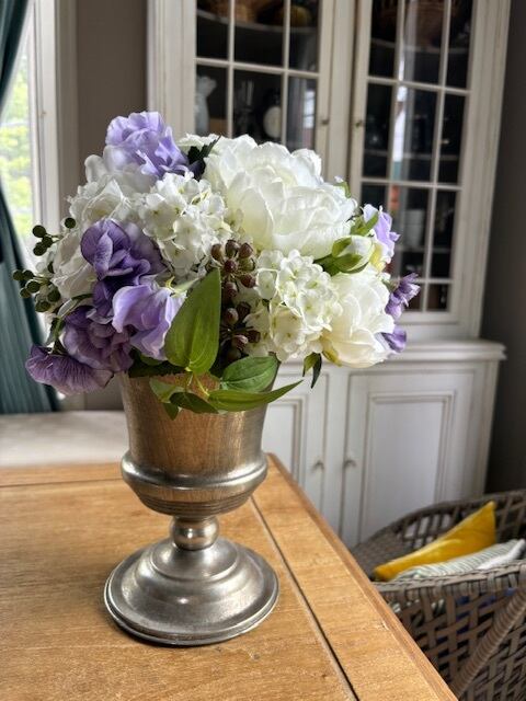 シルバーの花器は軽いのでとても扱いやすいです。